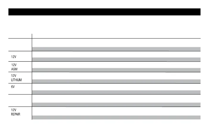 GENIUS5 有七 (7) 種模式: 待機、12V、12V AGM、12V 鋰電池、6V, 復原模式 及 FORCE。某些充電模式必須長按三(3)至五(5)秒才能進入