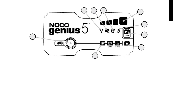 9.) Mode LED Indicates the Charge Mode the charger is currently in. Push the