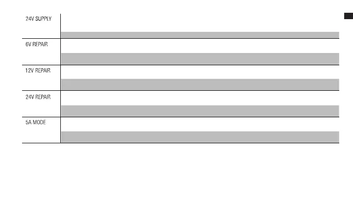 folgenden Modi verwendet werden: 12 V, 12 V-AGM, 12 V-LITHIUM, 6 V, 6 V-AGM, 6 V-LITHIUM, 24 V, 24 V-AGM und 24 V-LITHIUM.