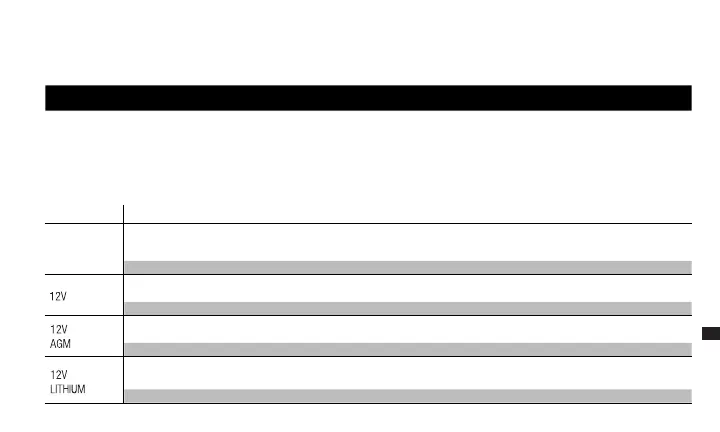 заряджання. Не використовуйте зарядний пристрій, поки не підтвердите відповідний режим заряджання для вашого акумулятора. Нижче