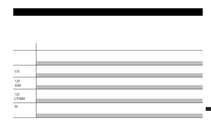 12ボルトのリン酸鉄リチウム(LiFePO4)の充電用。選択すると、12Vリチウムの青色LEDが点灯します。バッテリー管理システム