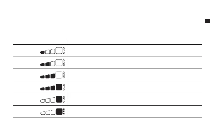 O LED de carregamento de 25% piscará lentamente em “ligado” e “desligado”, quando a bateria estiver com menos de 25% da