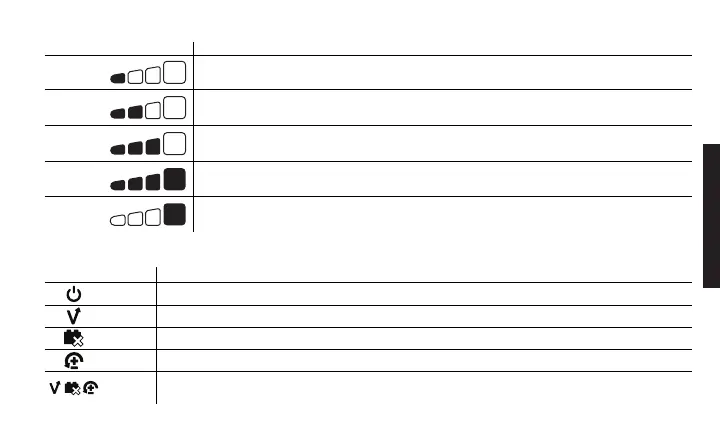 niveau de charge atteint 25 %, le DEL de 25 % reste fixe et le DEL suivant commence à clignoter.