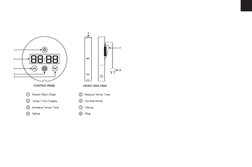 Setup-knappen i 3 sekunder for å velge temper-