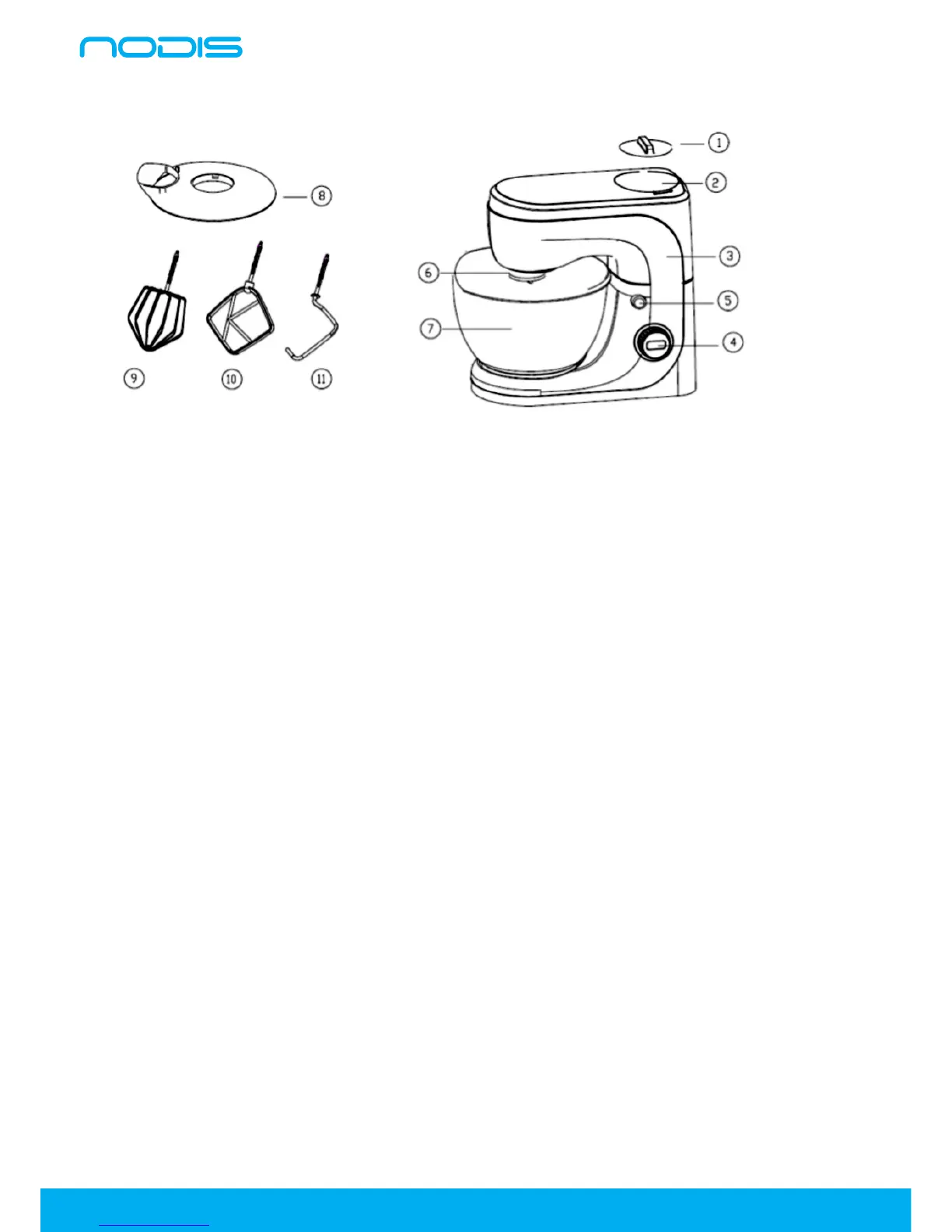 9. Remove (2) The mixing bowl ,disassemble (8) or (9) or (10) accessories and then (11) Bowl Lid.