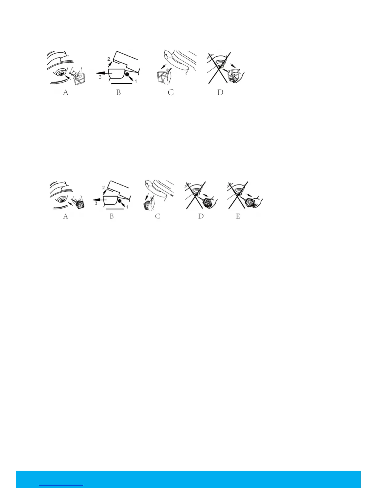 2. Non tenere la frusta dalla parte in acciaio inox per inserirla nell’albero girevole, si potrebbe