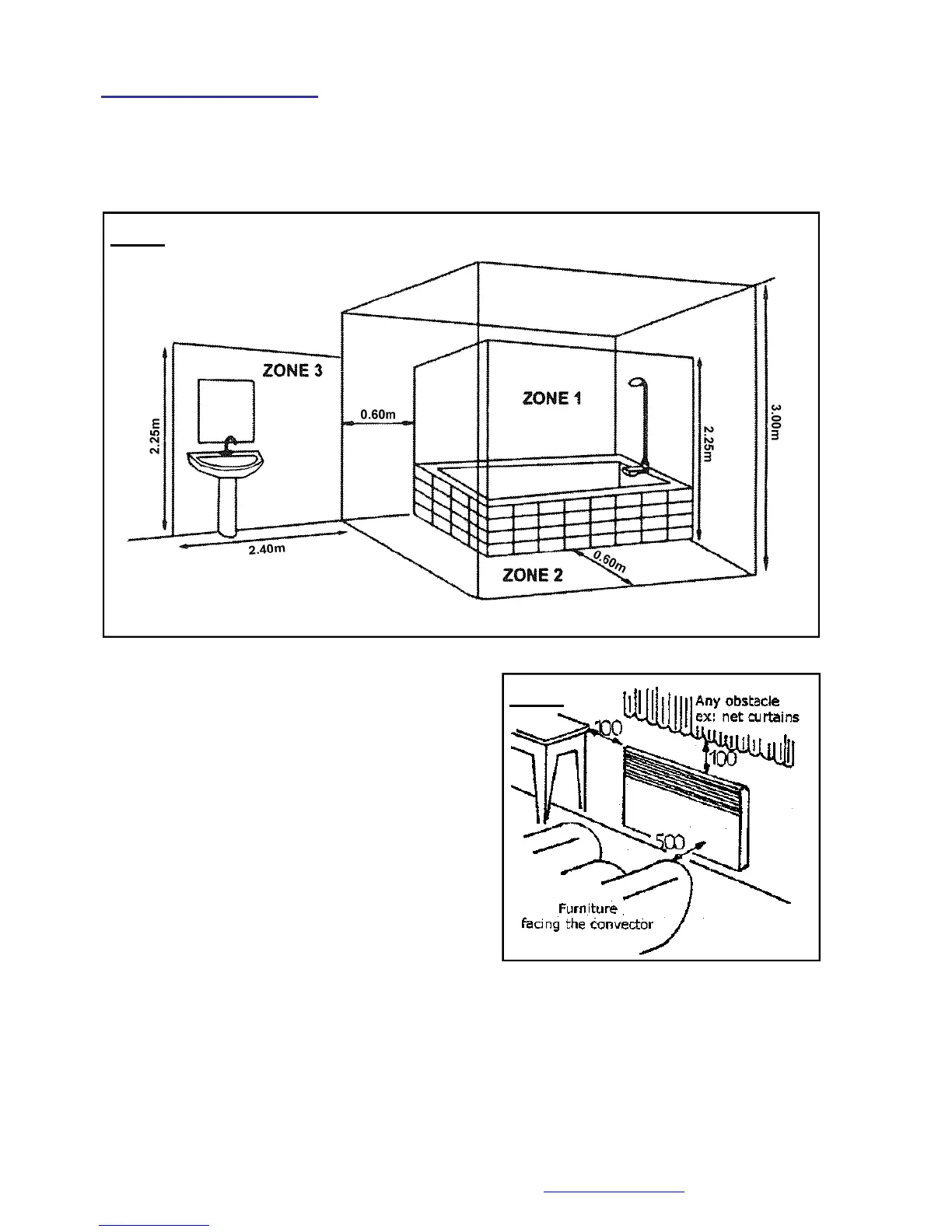 This heater is suitable for use in all rooms including Zone 2 in Bathrooms (Fig.4)
