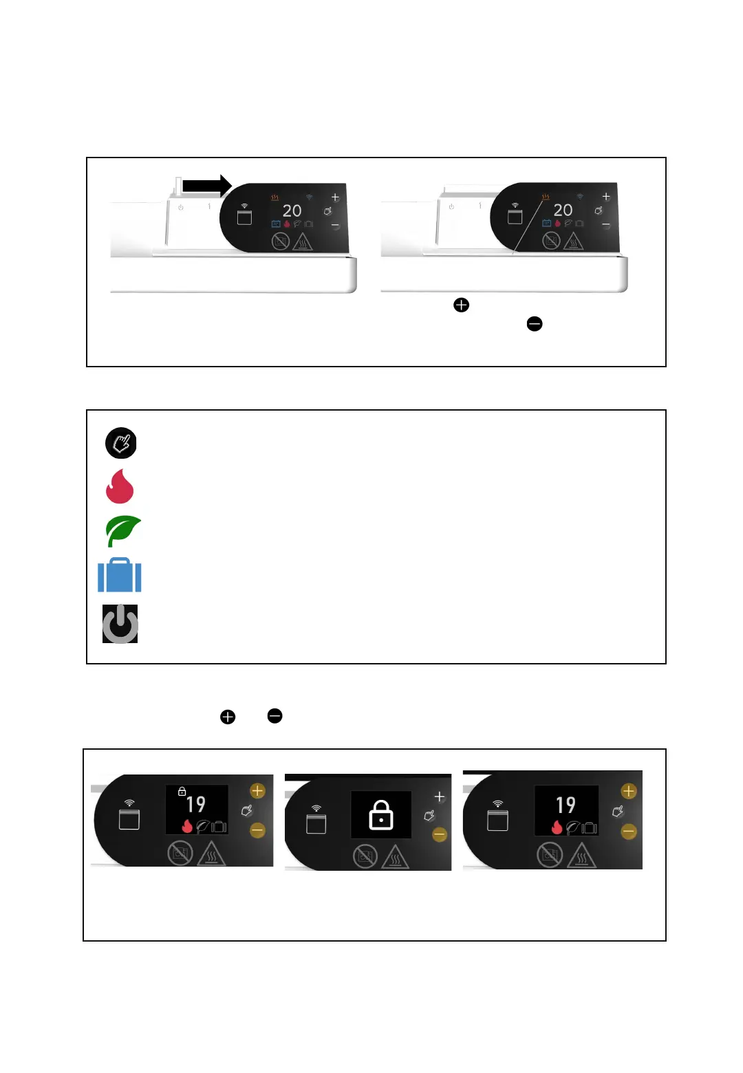 Hold + and – until lock