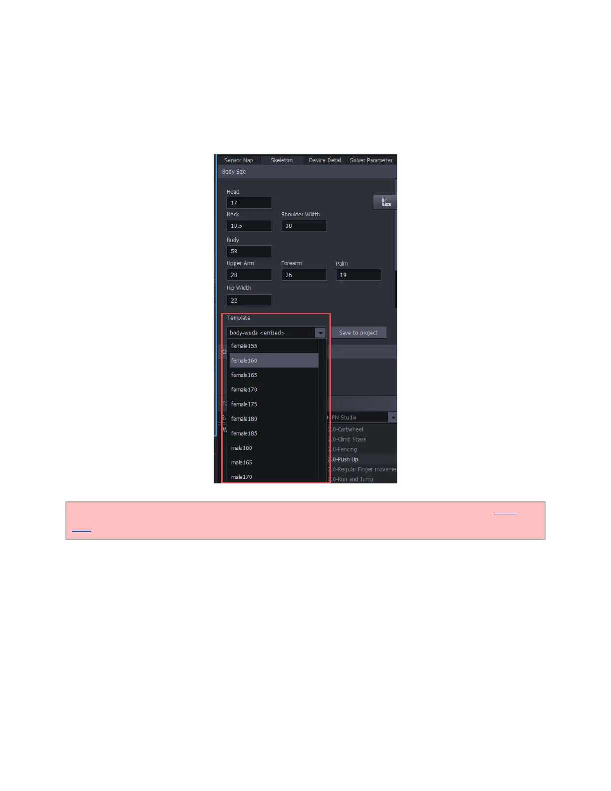 A custom body size profile can be created to best fit the performer in an advance situation. See Body