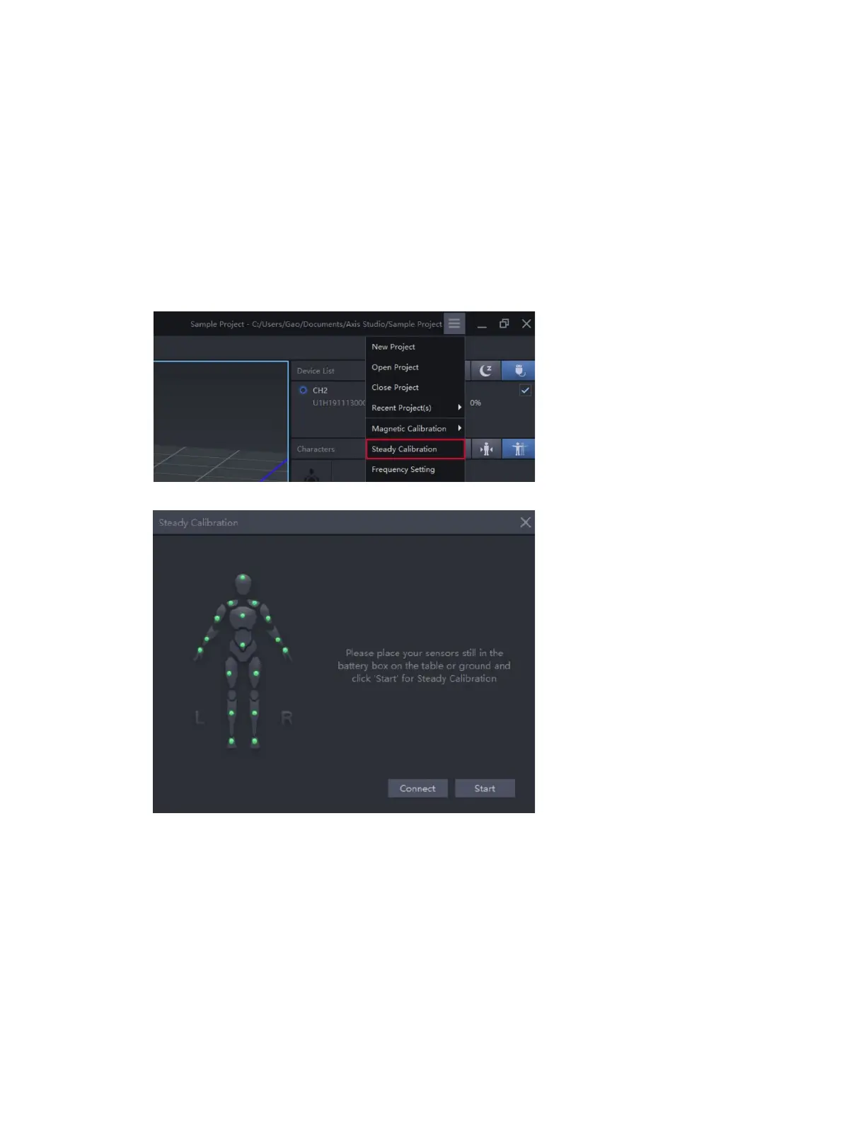 5. Click “ Connect ” button first, then click the “Start” button after sensors light up.