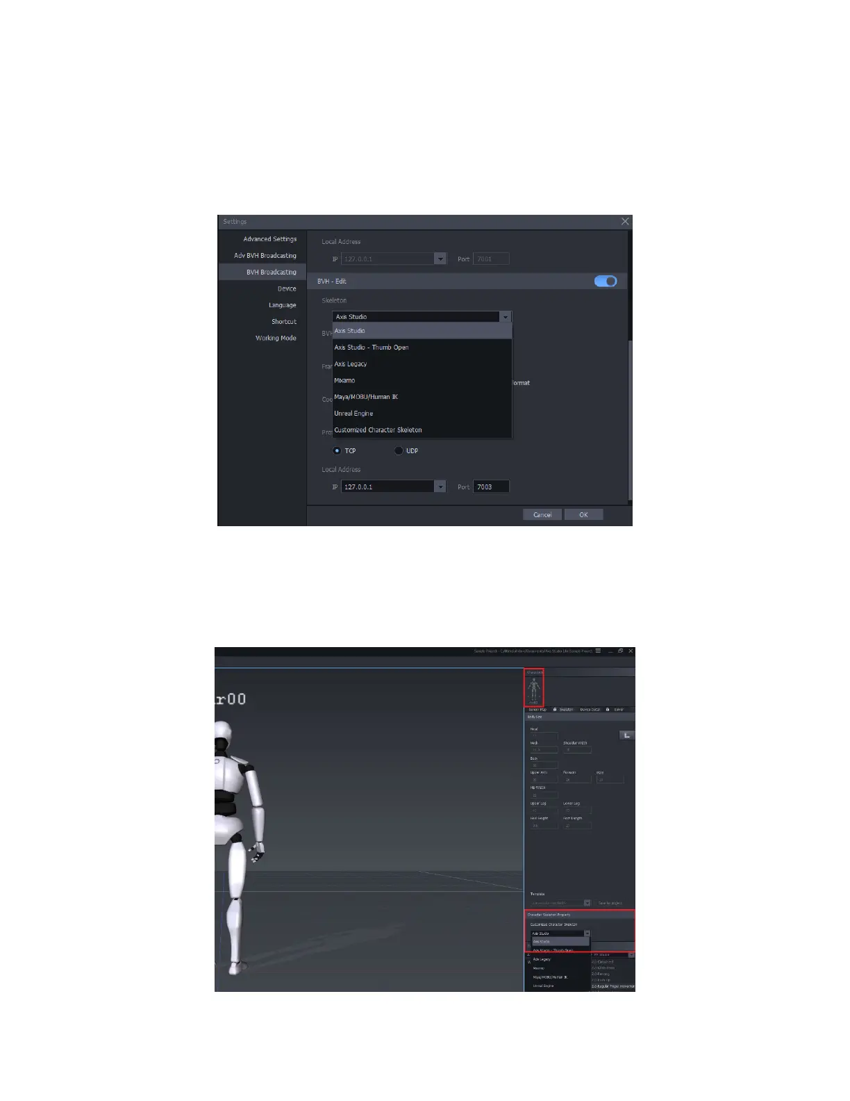 Selecting Customized Character Skeleton option in the broadcast options allows users to make