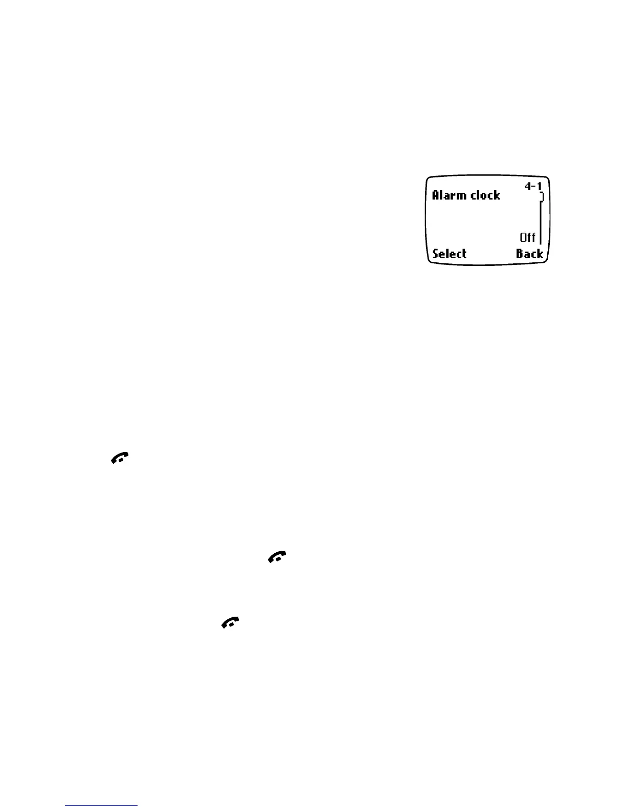 At the time of the alarm, the phone sounds an alert tone. Pressing Stop or the