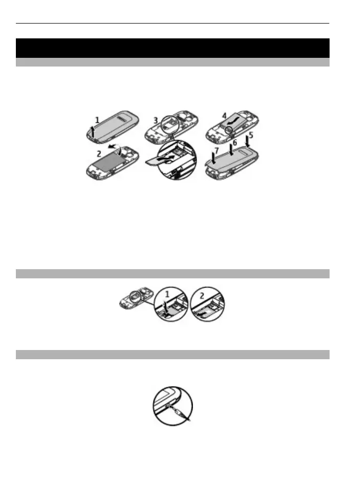 4 Vuelva a colocar la batería (4) y la cubierta posterior (5, 6, 7).