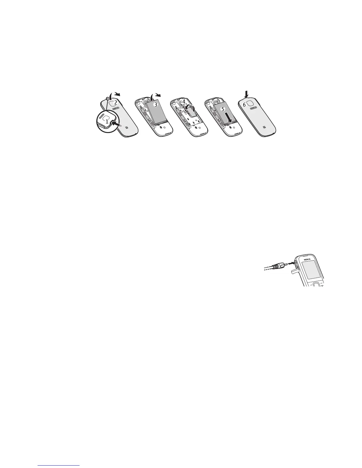 4. Insert the battery (5), and replace the back cover (6).