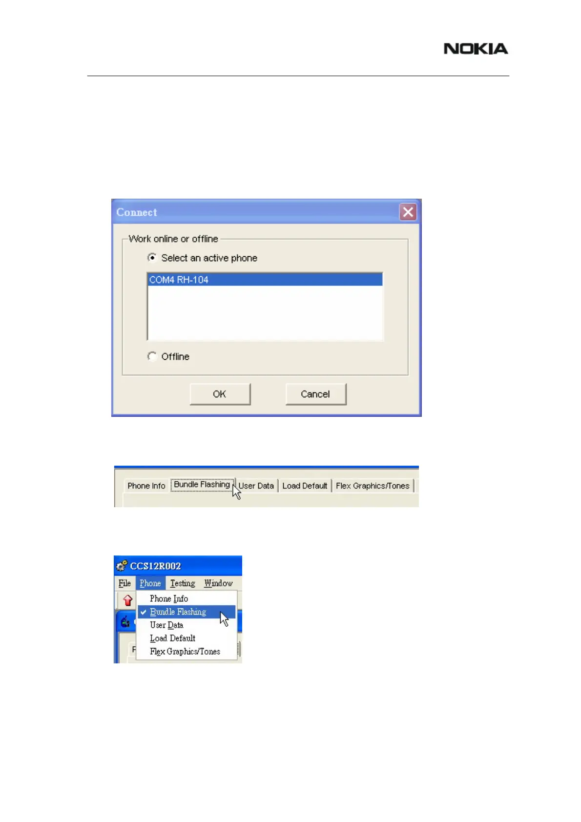 Select an active phone. Note that ‘Offline’ means you can use service software