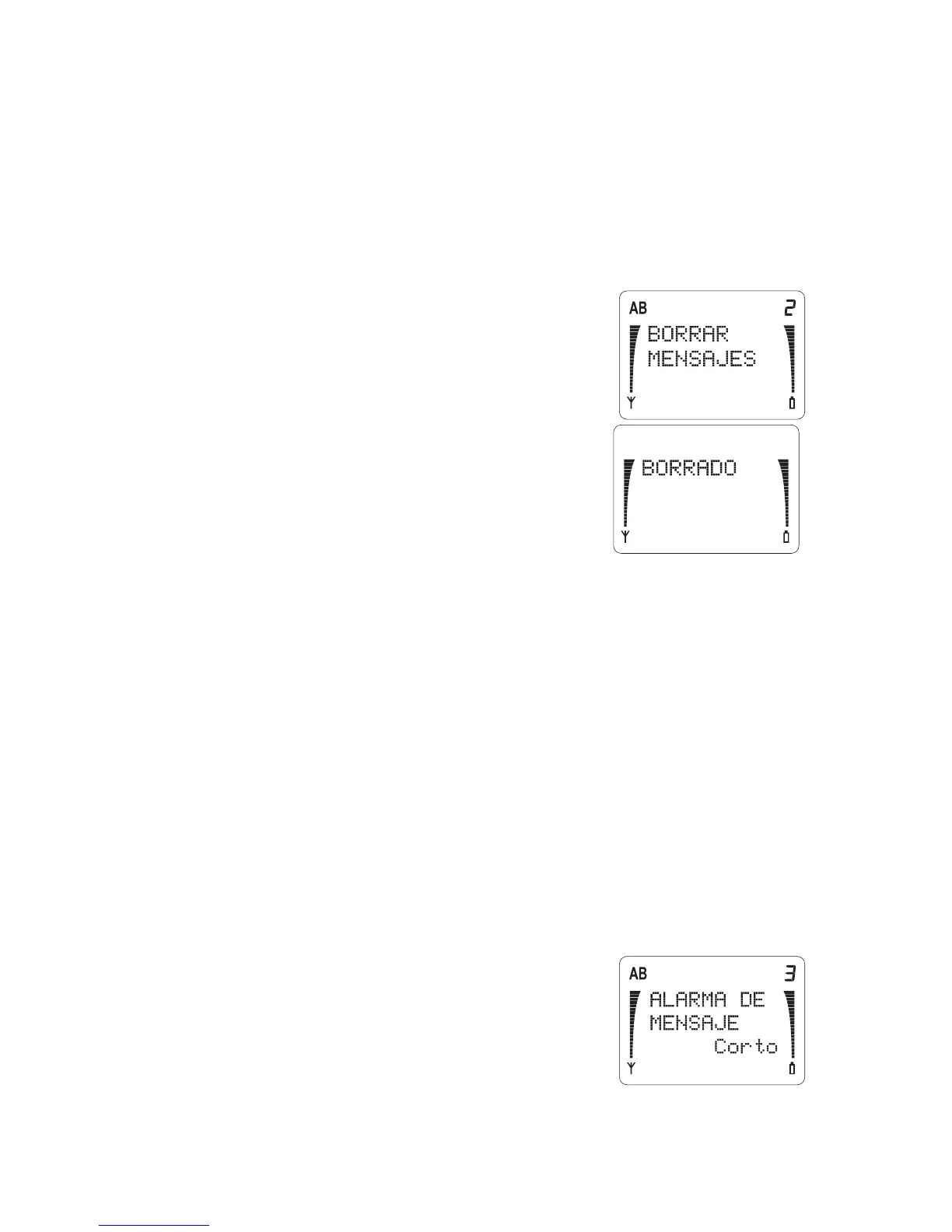 Este menú le permite borrar cualquier mensaje guardado.