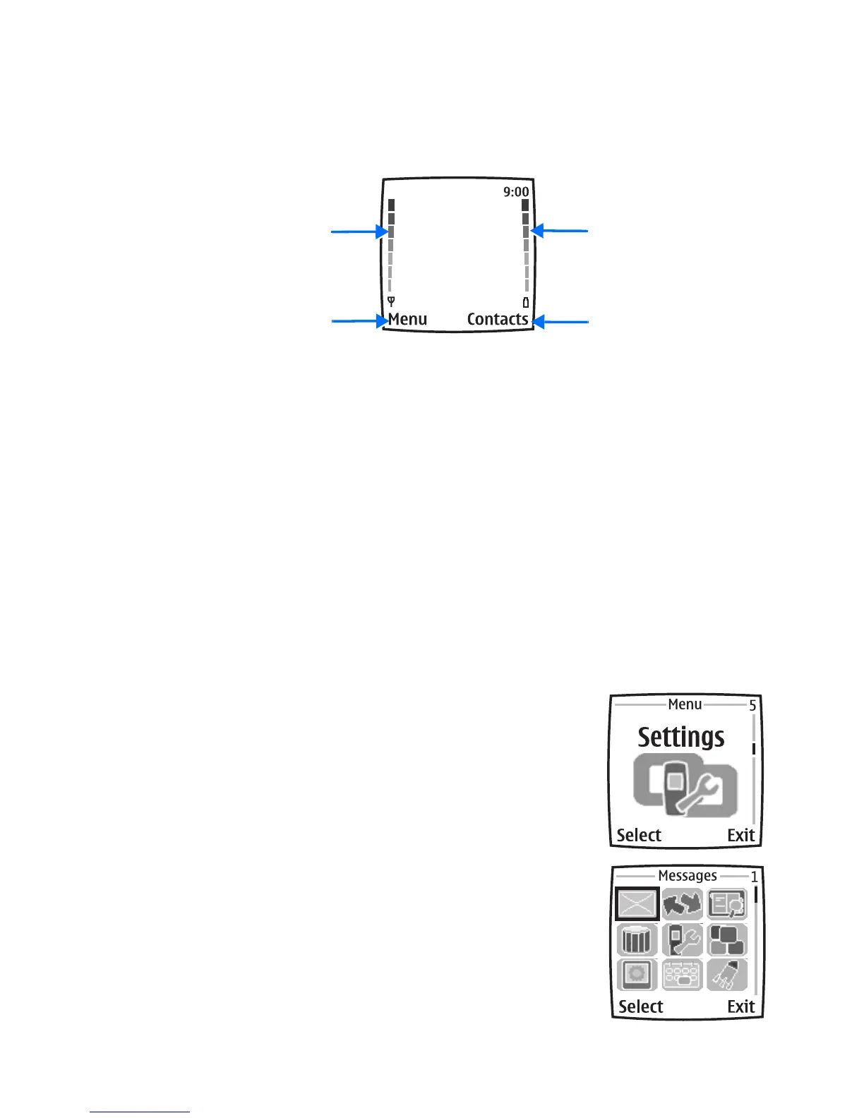 Contacts—The Right selection key in the standby mode accesses either the