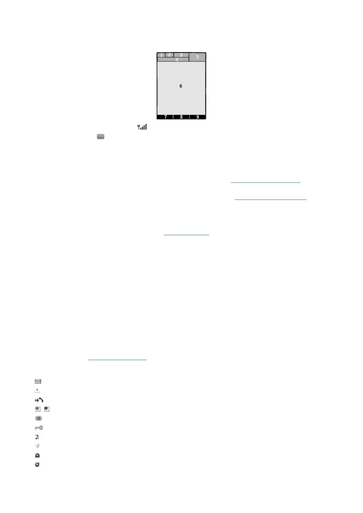The active standby mode displays a list of selected device features and information that you can directly access.