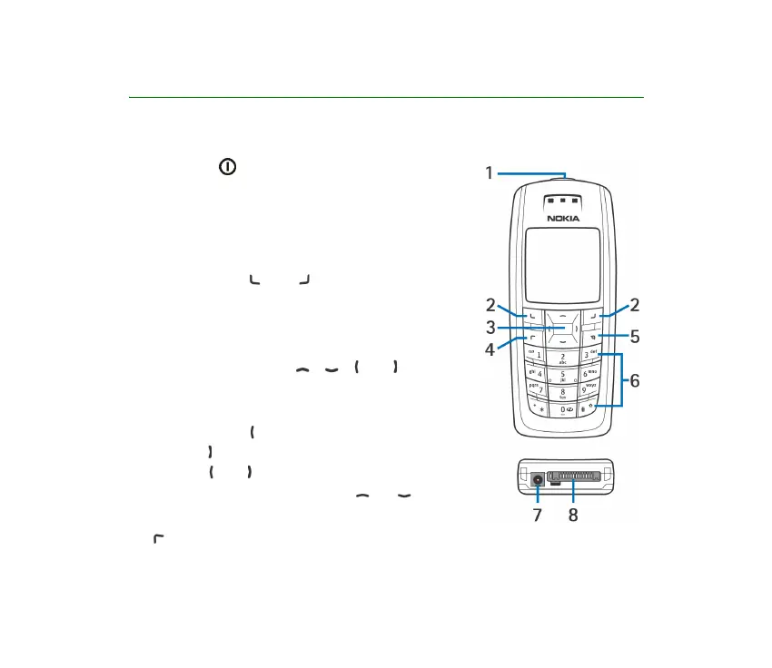 Switches the phone on and off. For example, when