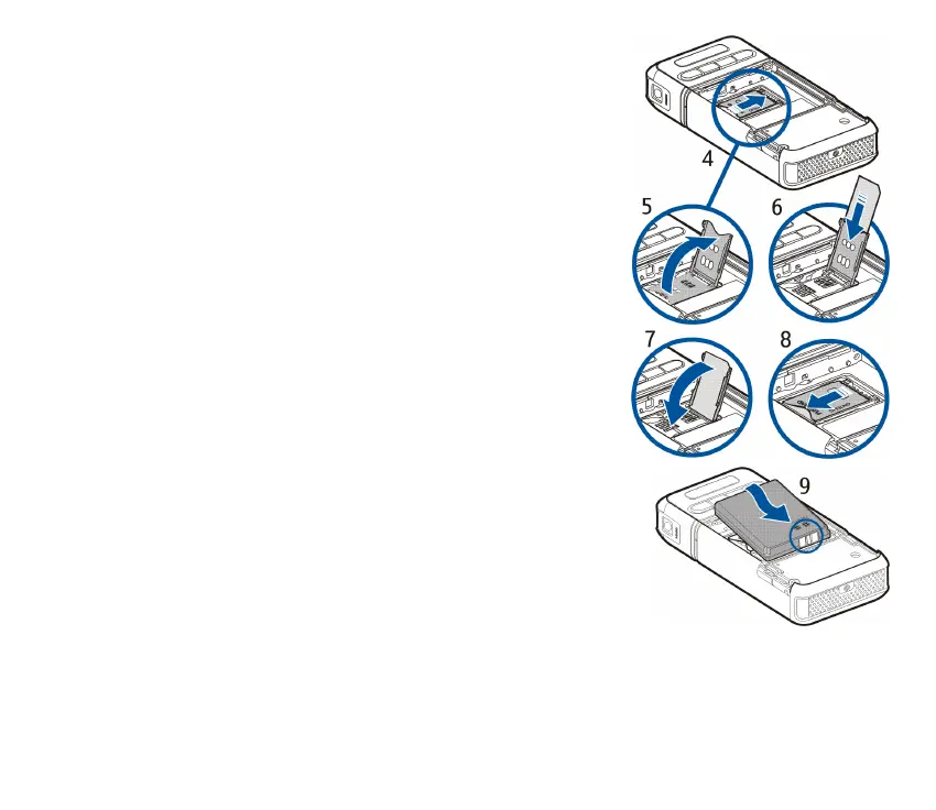 4. Insert the SIM card into the SIM card holder (6). Ensure that the