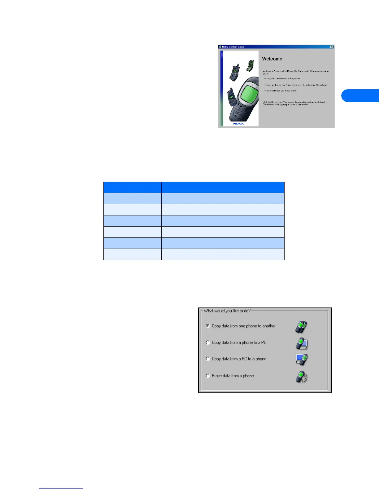 Nokia Content Copier application utilizes wizards to help you