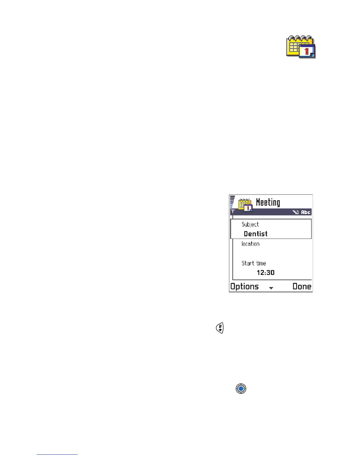 2 Fill in the fields, see the “Calendar entry fields” on page 118. Use the