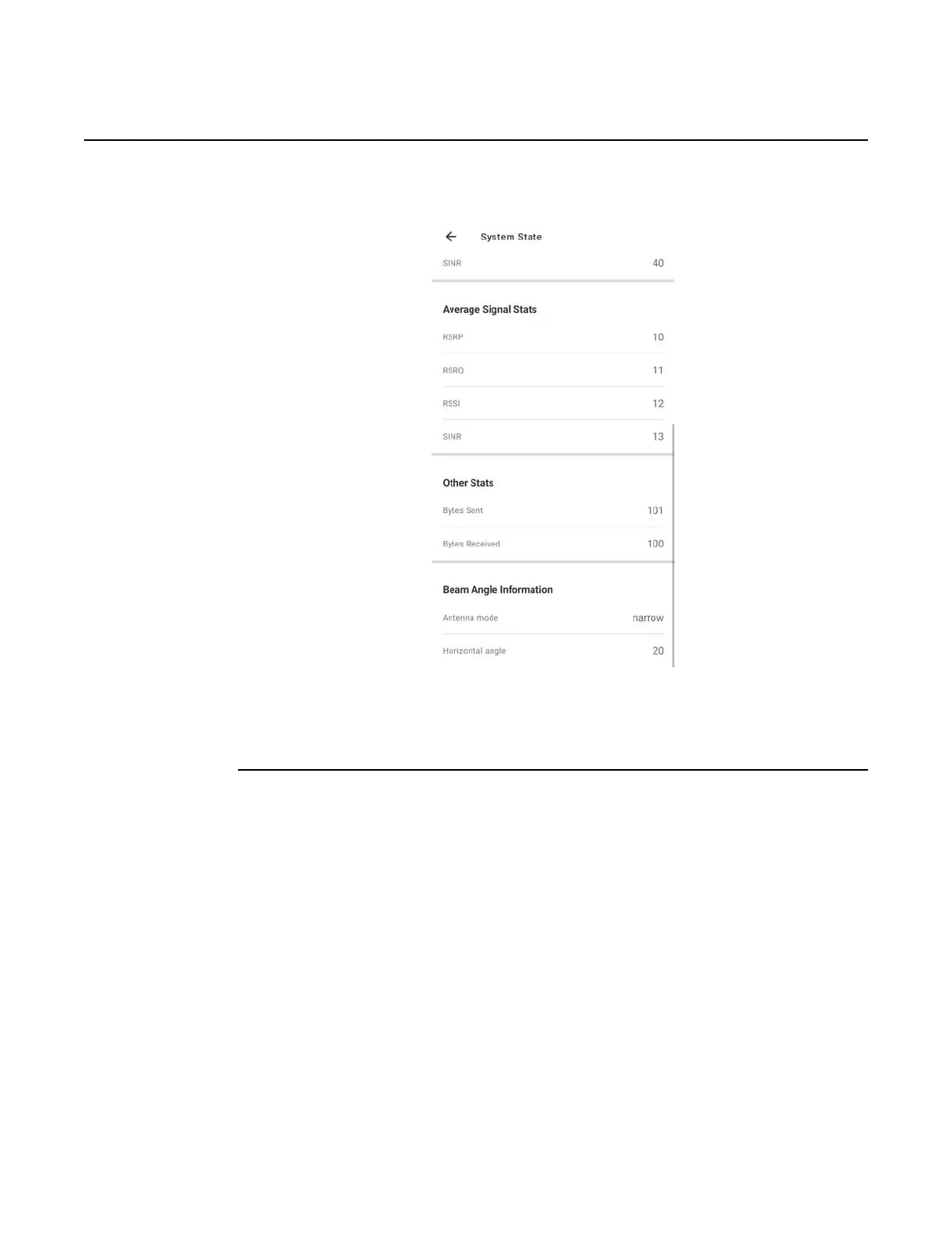 Figure 29 System state screen with Beam Angle information for a Nokia