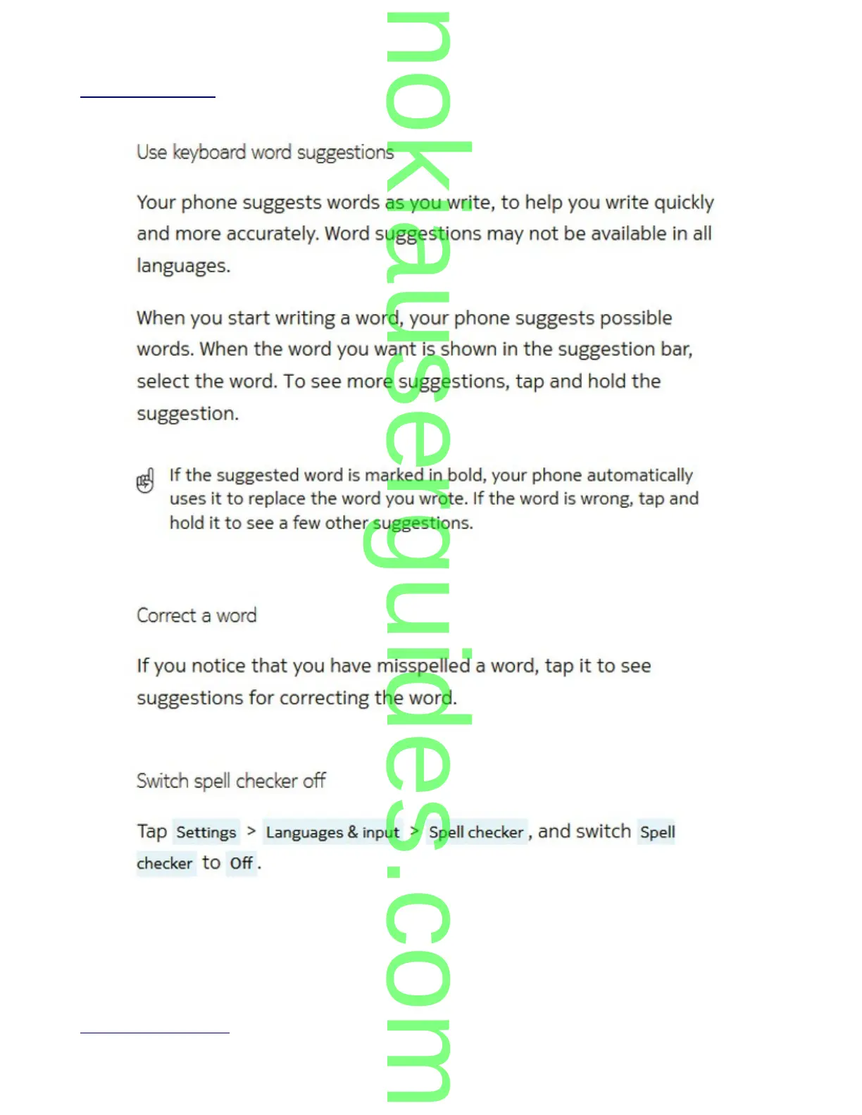 Your phone suggests words as you write, to help you write quickly and more accurately. Word