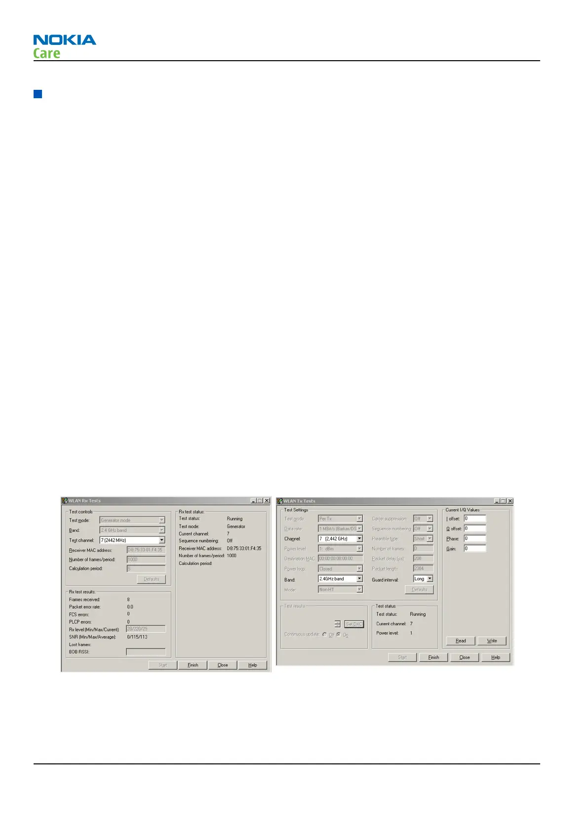 4. Choose Testing → WLAN RX Tests or WLAN TX Tests. See the following figures.
