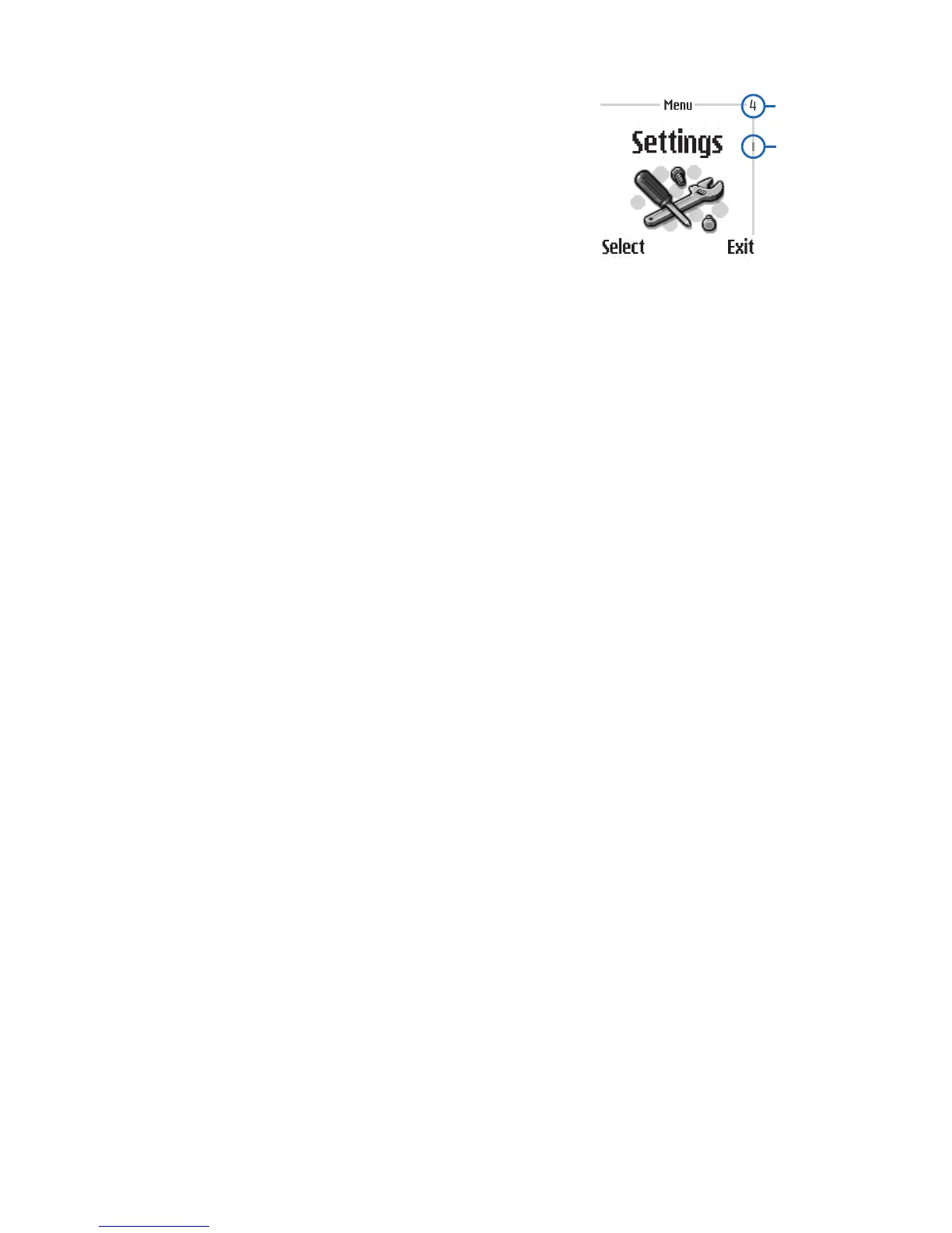 2 When you arrive at a menu, press Select (the left selection key) to
