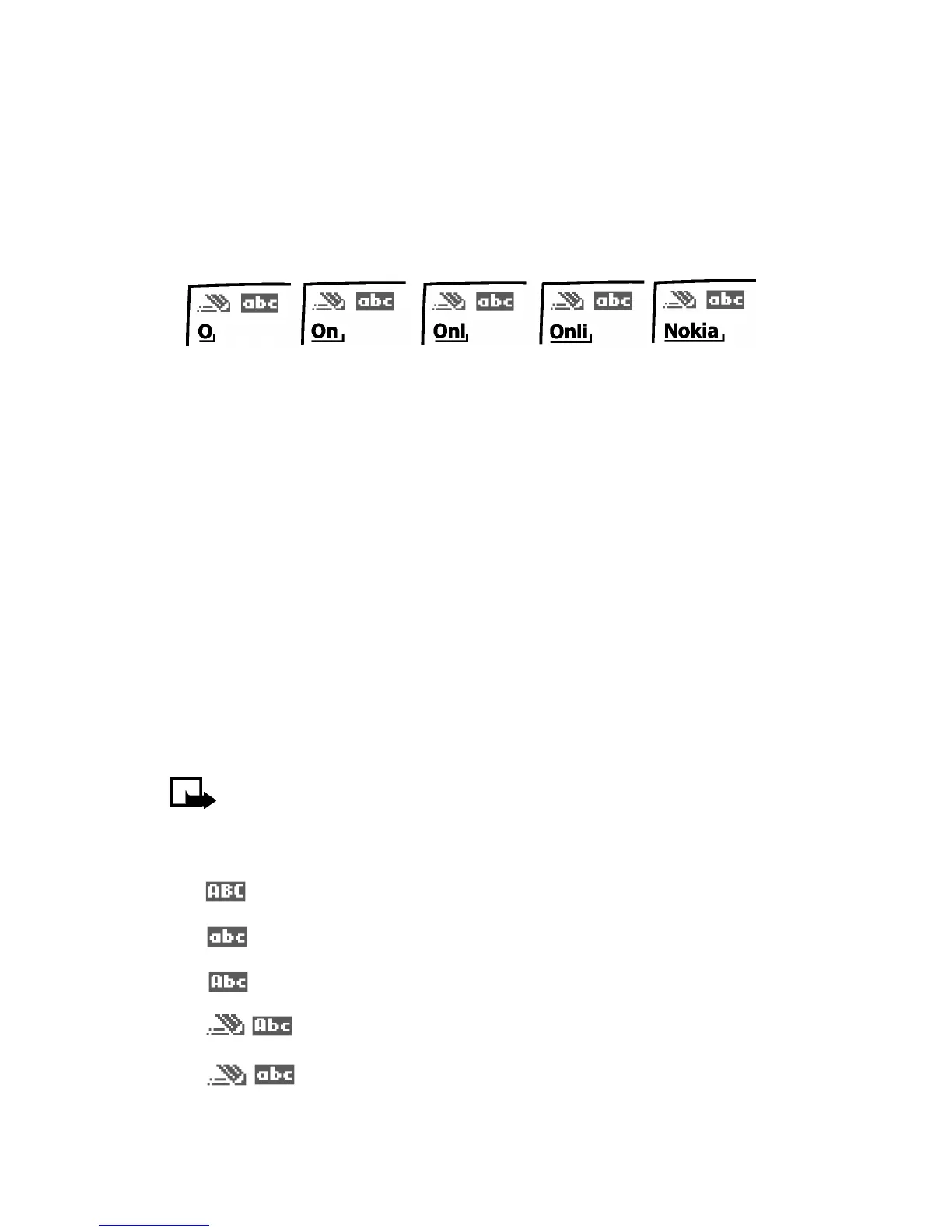 For example, to write Nokia with the English dictionary selected, press each