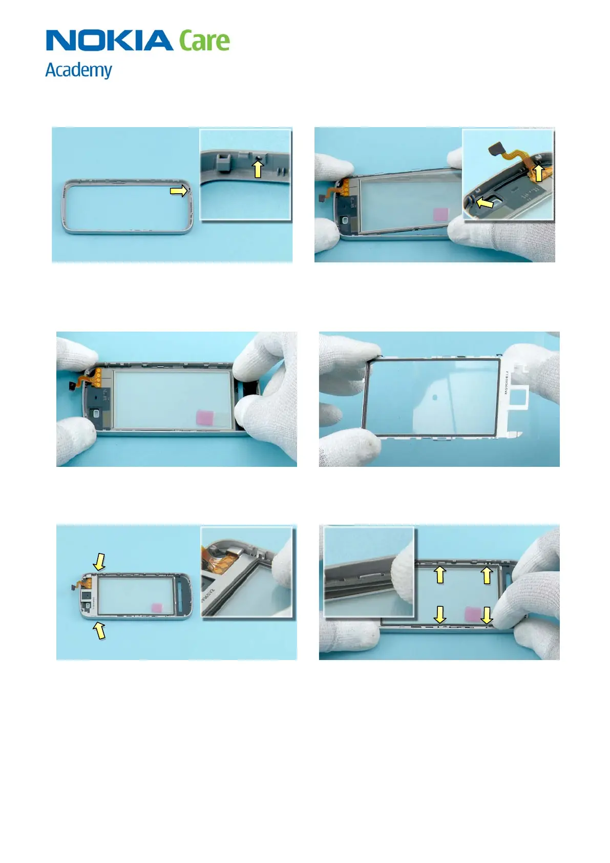 5) Align the TOUCH FRAME ASSY on top of the A-
