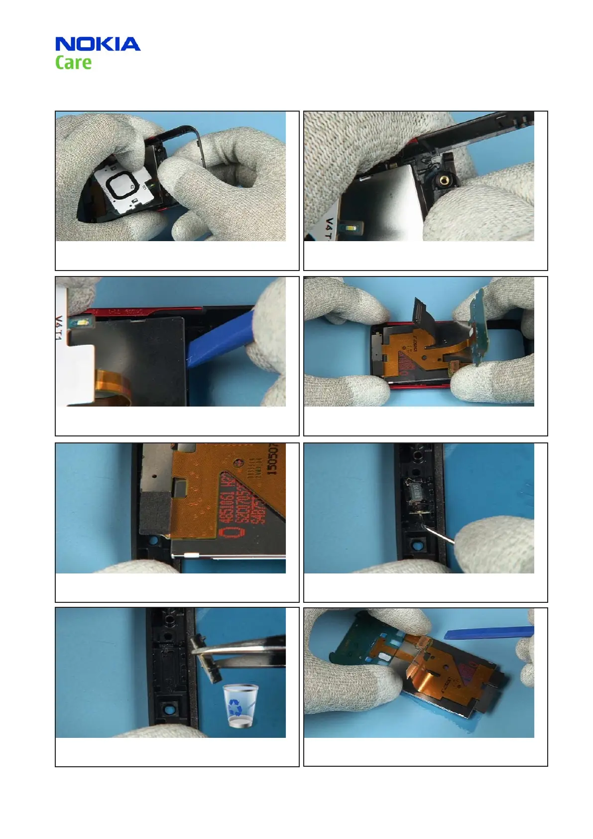 35. Release the LCD from its sealing with the SS-93 partly. 36. Lift up the LCD together with the TOP FLEX ASSEMBLY.