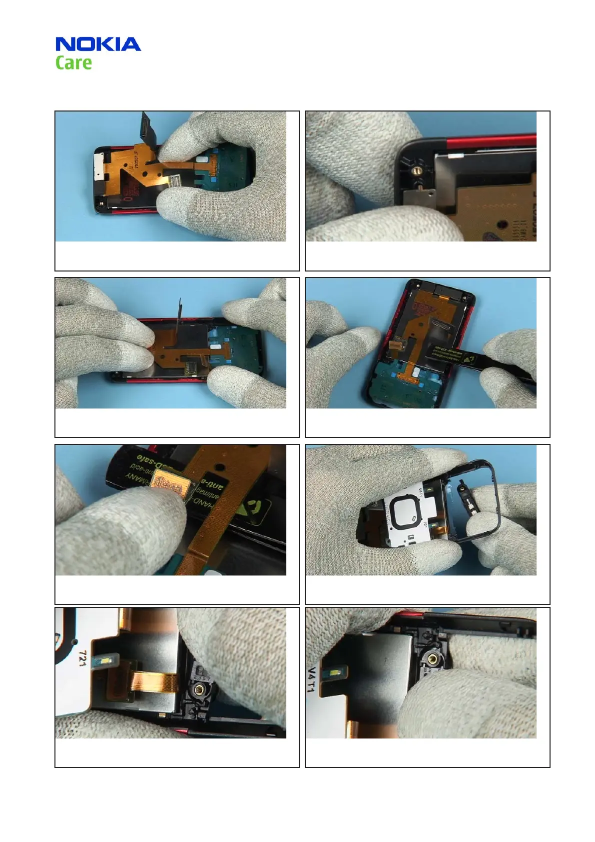 19. Smooth down the TOP FLEX ASSEMBLY evenly. 20. Insert the metal tweezers under the ex foil.