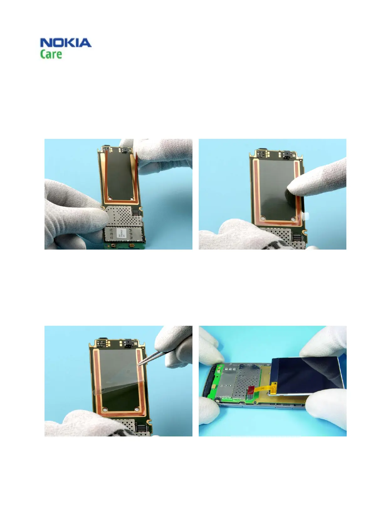 Remove the protective foil with tweezers. Attach the LCD connector (part 1).