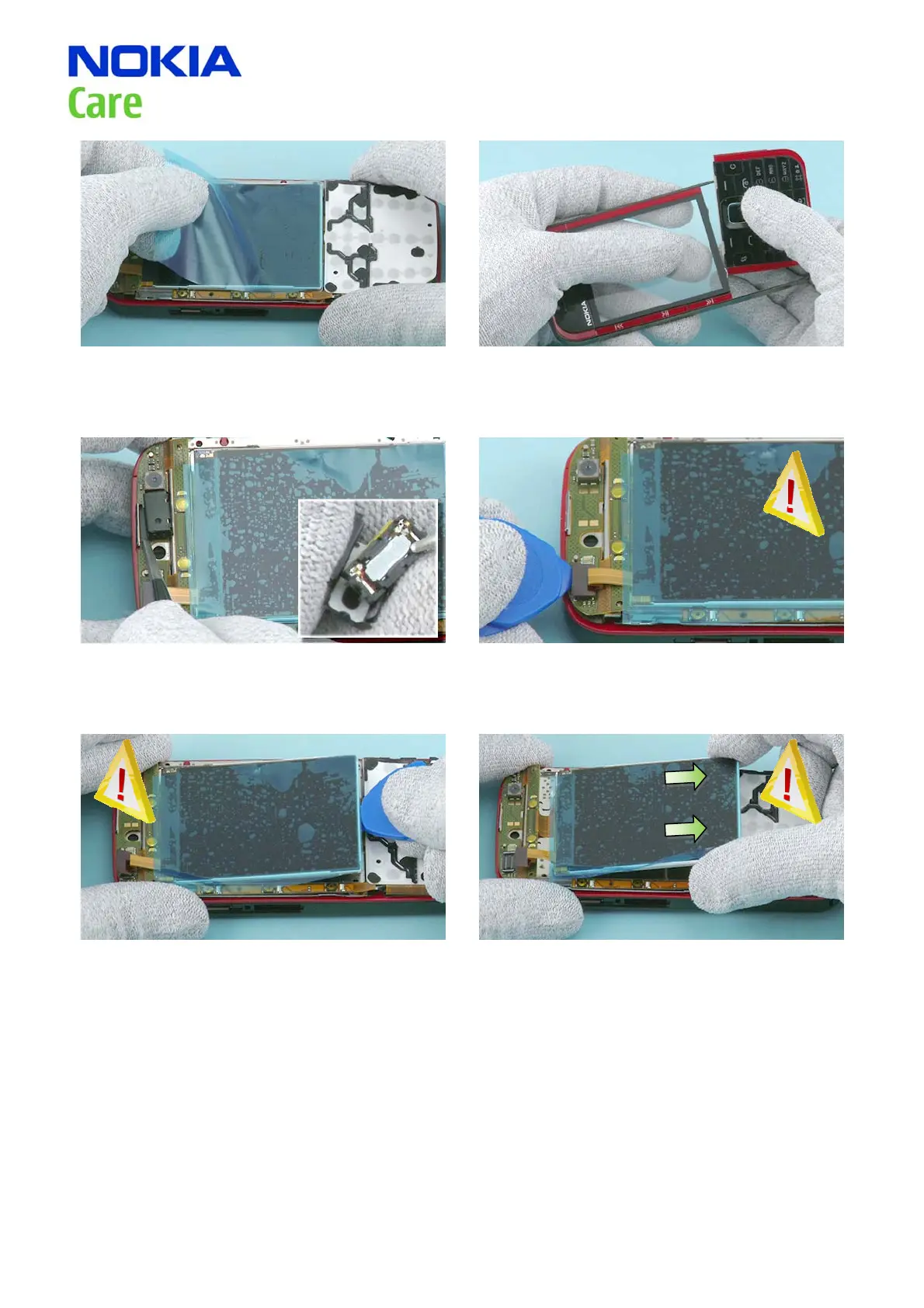 11) Carefully release the LCD with the SRT-6. 12) Carefully lift up the LCD and push it into