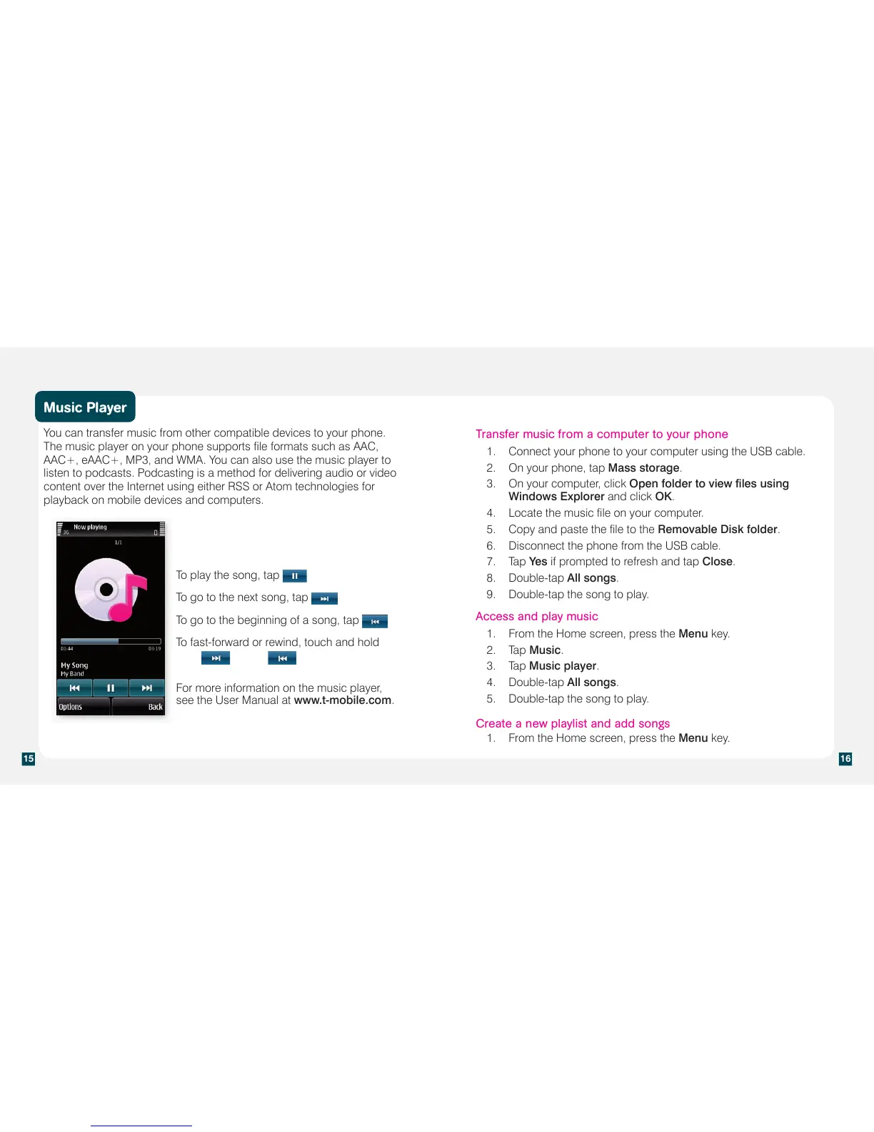 AAC+, eAAC+, MP3, and WMA. You can also use the music player to