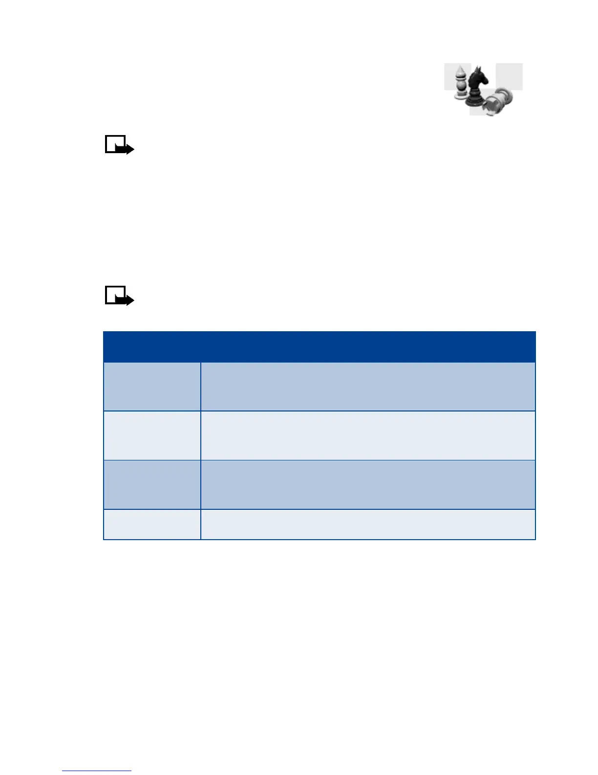 list of game submenus in the following table appear in the display.