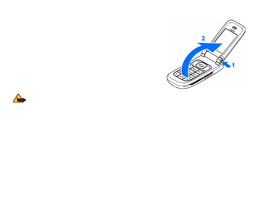 To open the phone press the fold release button (1). The fold opens