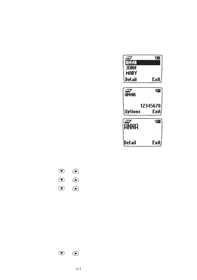 The phone can show the stored phone numbers and names in three