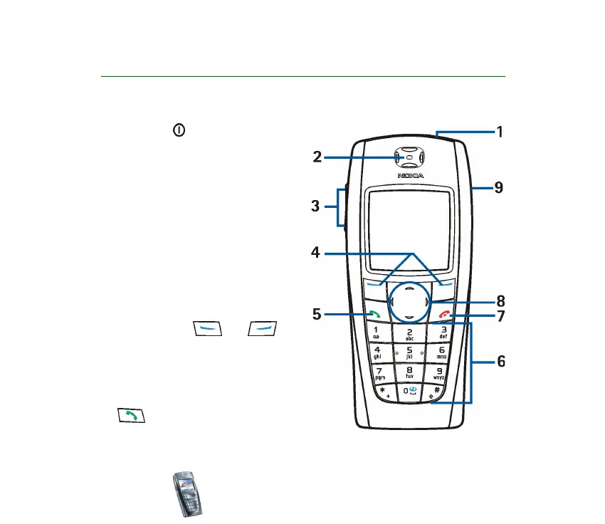 Switches the phone on and off.