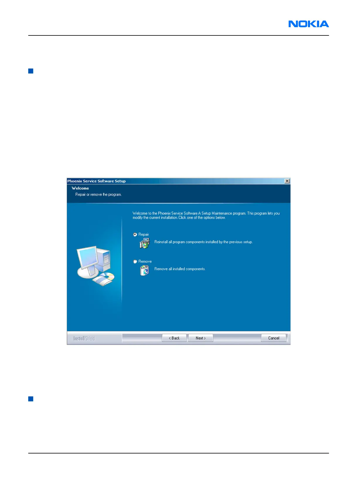 If you experience any problems with the service software or suspect that files have been lost, use the repair