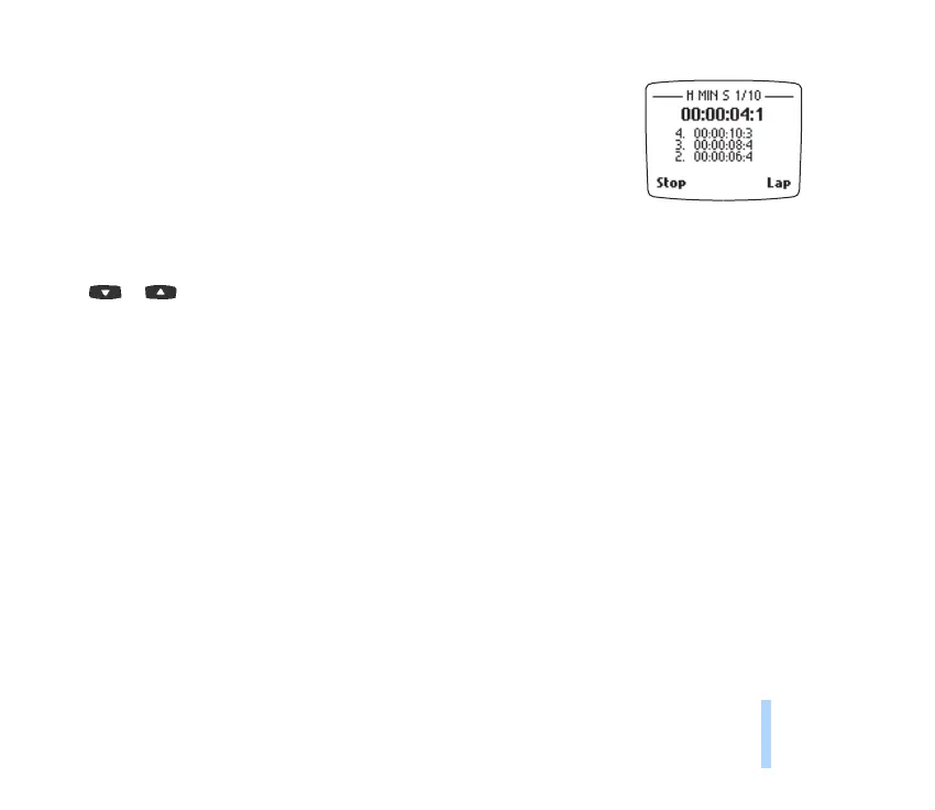 Three lap times can be viewed simultaneously with running time on the phone’s display. Scroll