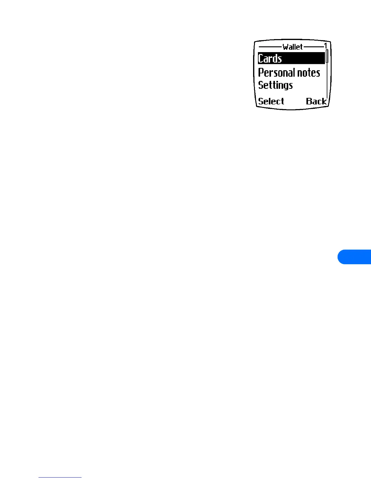 1 At the Start screen, press Menu 12-3 (Extras - Wallet). After a brief