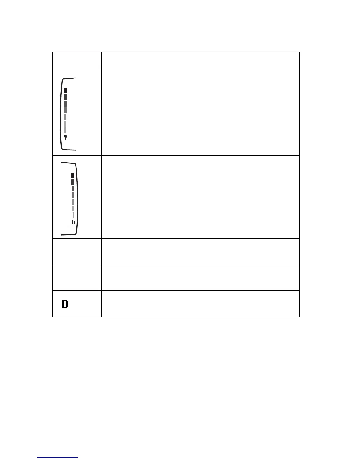 Shows the battery charge level. The higher the bar, the higher