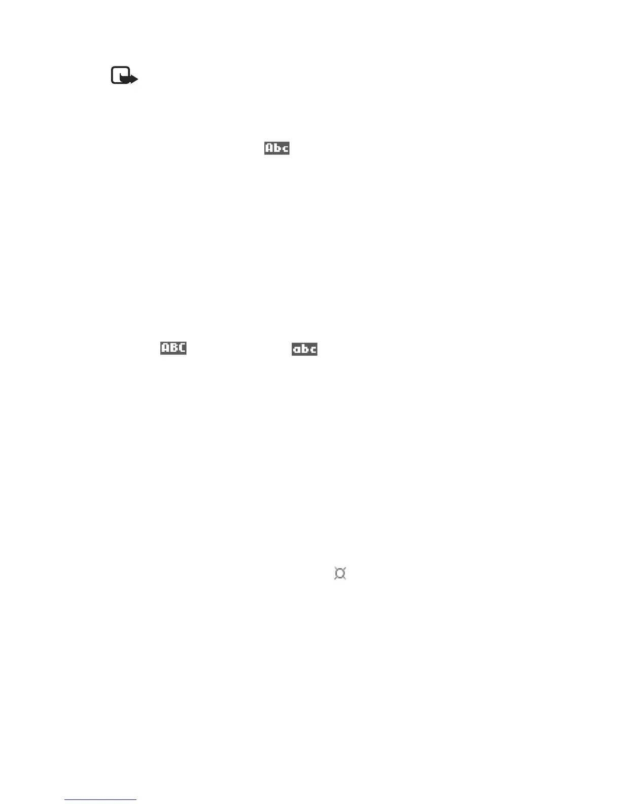 • To erase all text, select Options > Clear text, or press and hold Clear.