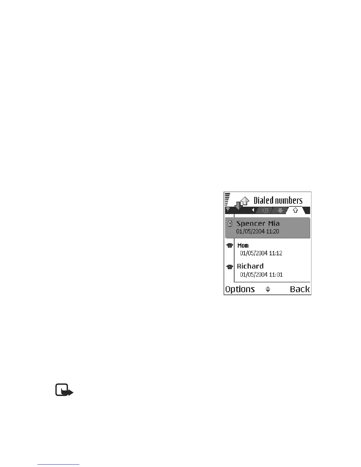 The phone registers the phone numbers of missed, received, and dialed calls, and