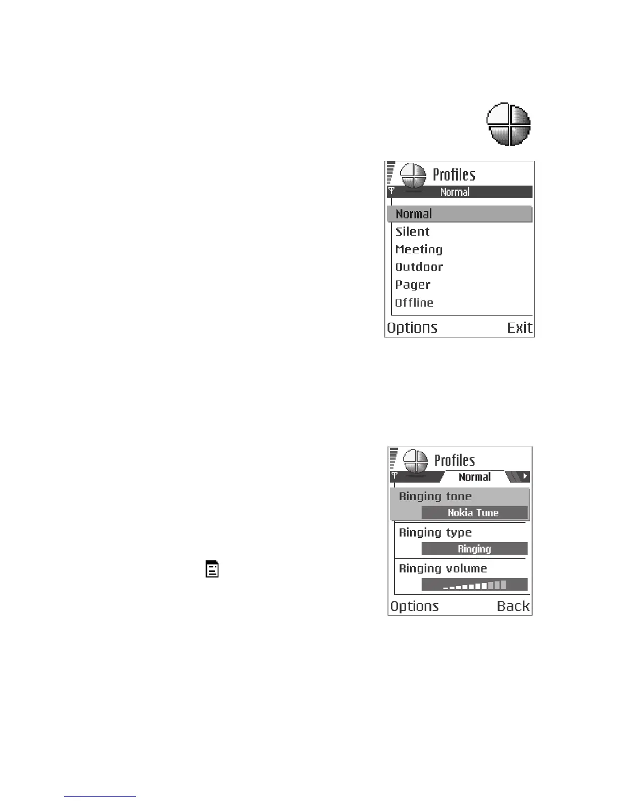 Shortcut: To change the profile in the standby mode, press the Power key briefly,