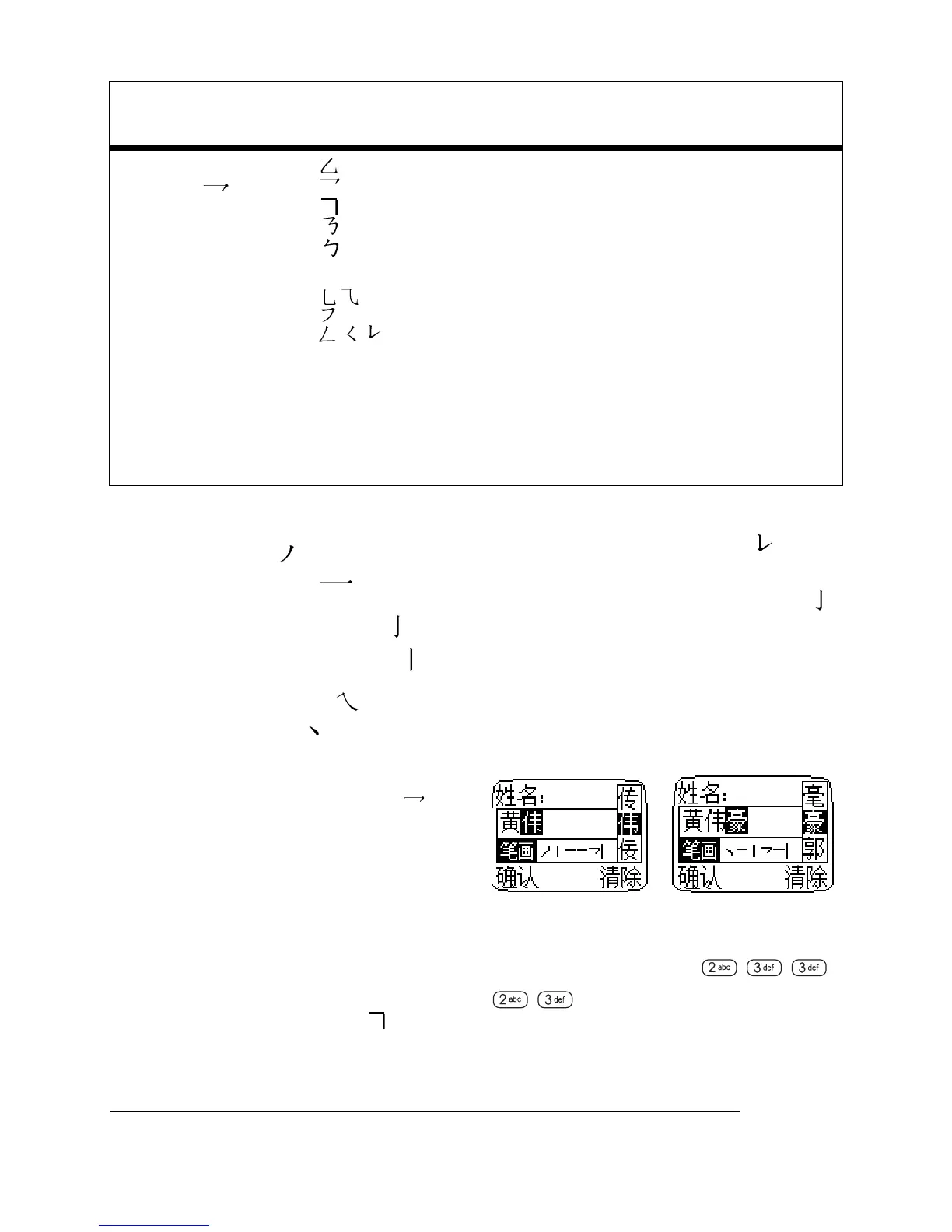 Example of stroke input in phone book