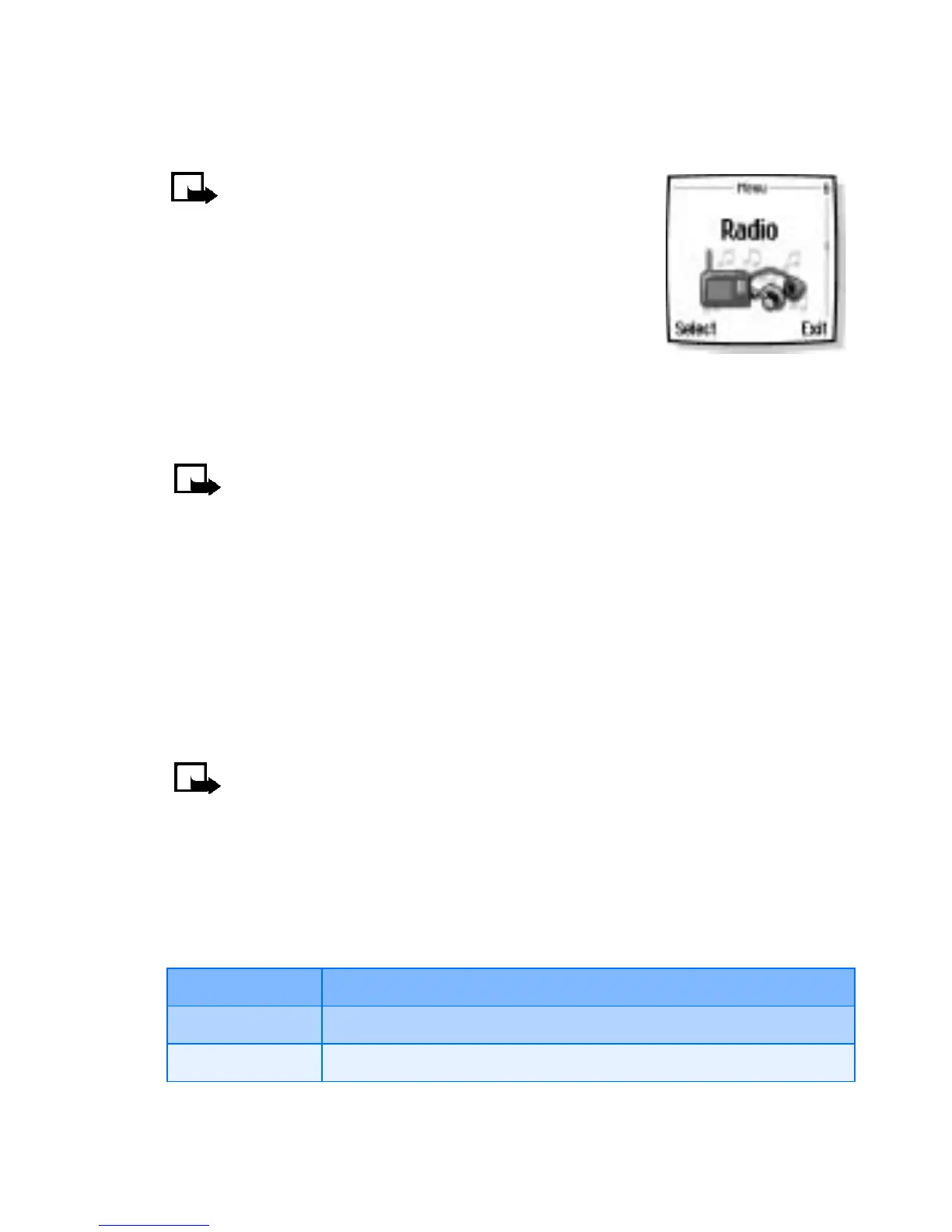 • At the Start screen, press Menu 6 (Radio).